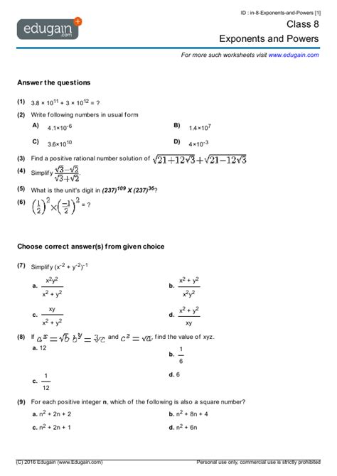 Exponents Worksheets Grade 8 Pdf Thekidsworksheet from thekidsworksheet.com