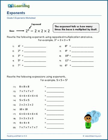 Exponents worksheets for grade 5 helps students. Exponents worksheets and online exercises. These exponents and radicals worksheets are a great resource for children in.