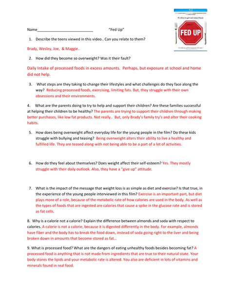 I have been attempting to eat better anyway and this just helpsme understand even more the importance of contemporary. Web fed up worksheet answer key : When the teacher pauses the film, answer the corresponding questions.