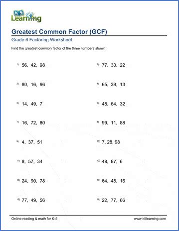 Web Gcf Worksheets 6 Th Grade.