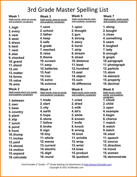 Create Lists Of Ten Or Twenty 3Rd Grade Spelling Words And.